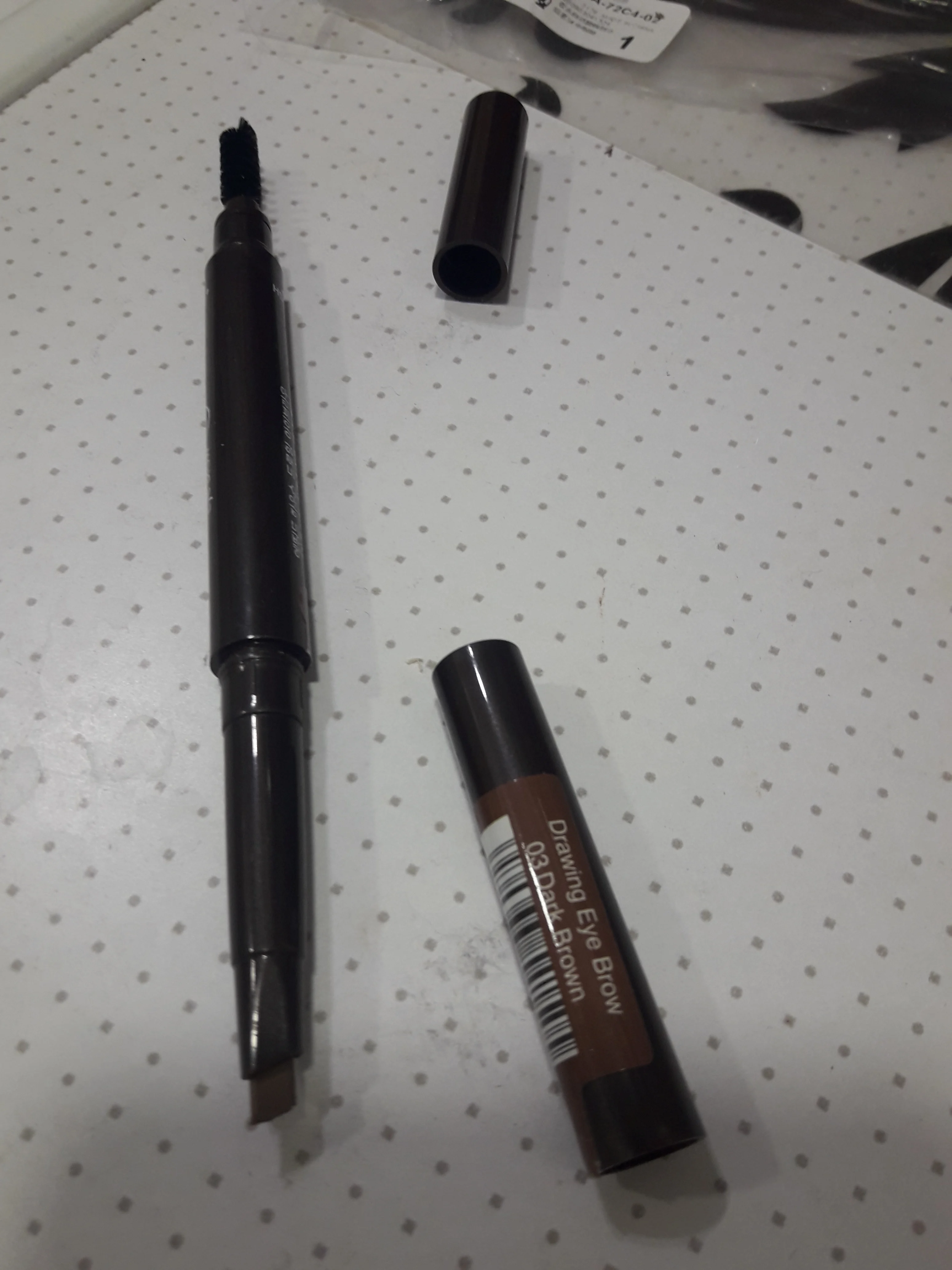 Заказываю уже второй раз. По качеству, грифель не хуже брендовых карандашей плюс очень удобная щёточка. Но бровях держится почти целый день.