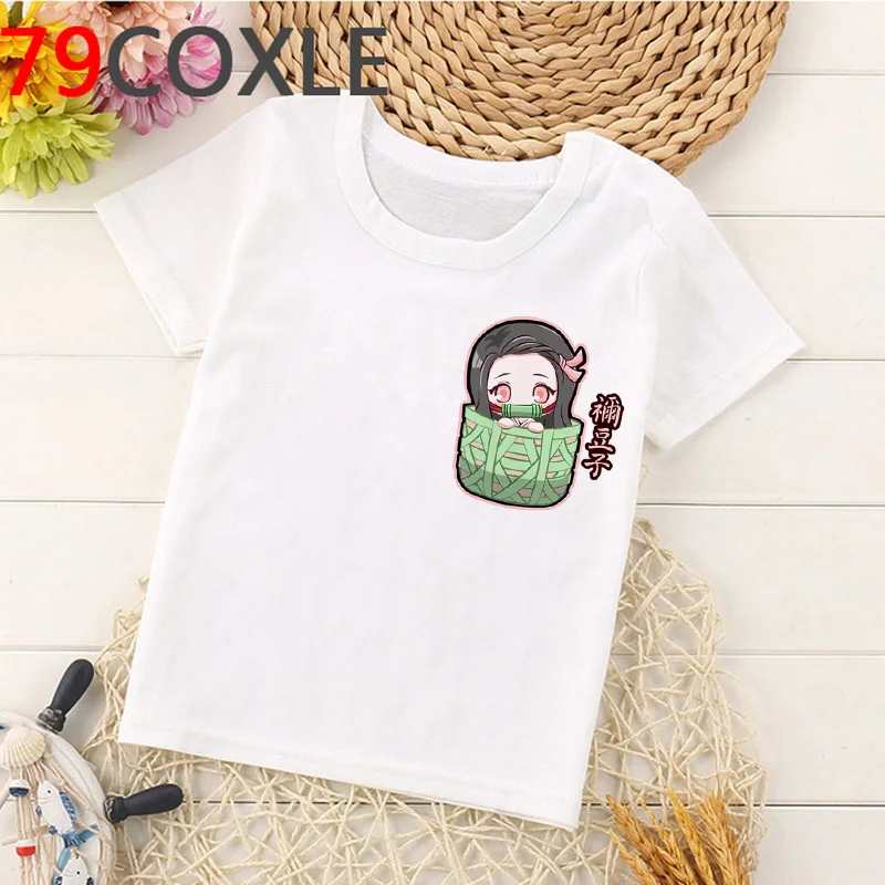 Демон убийца T рубашка для детей, принт с героями мультфильмов Kawaii, Kimetsu без Yaiba футболка для мальчиковдевочек демона лезвия аниме лезвие, футболка приведение для детей