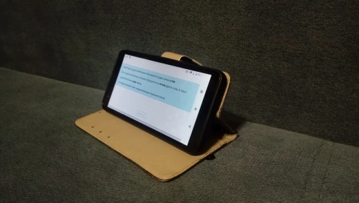 Матовый, шероховатый, жёсткий, от этого цвет совсем не яркий, как будто потёртый. Как подставка горизонтальная не держится, скользит. 4 прорези внутри и карман за ними для тех, кто любит использовать в качестве кошелька. В целом очень дешёвый вид...