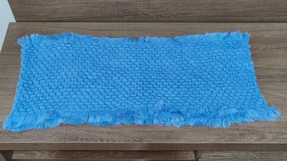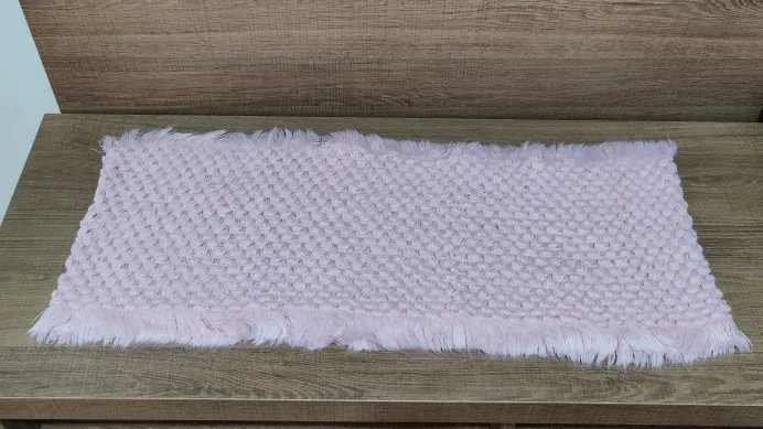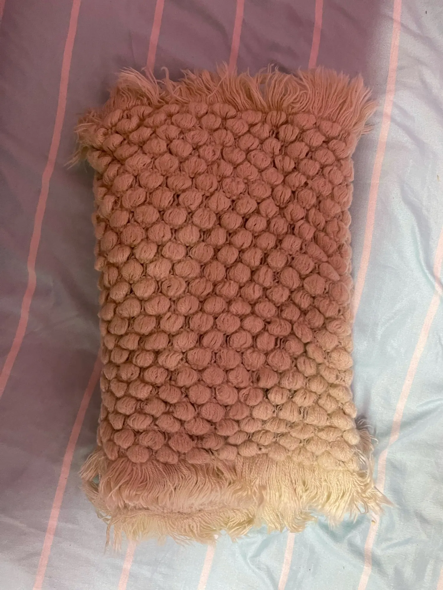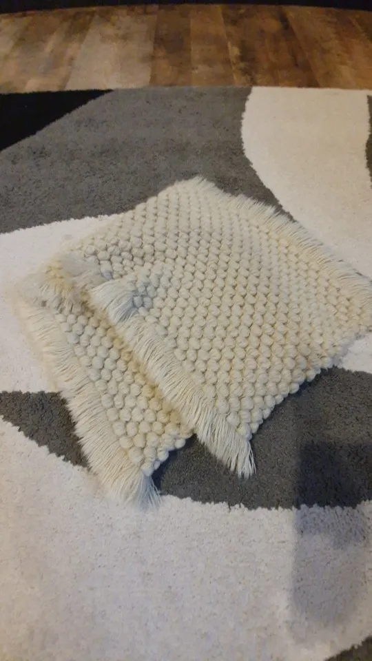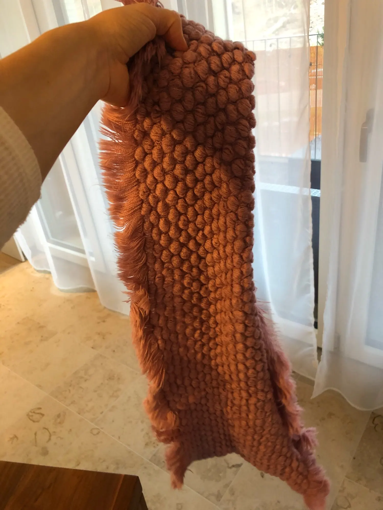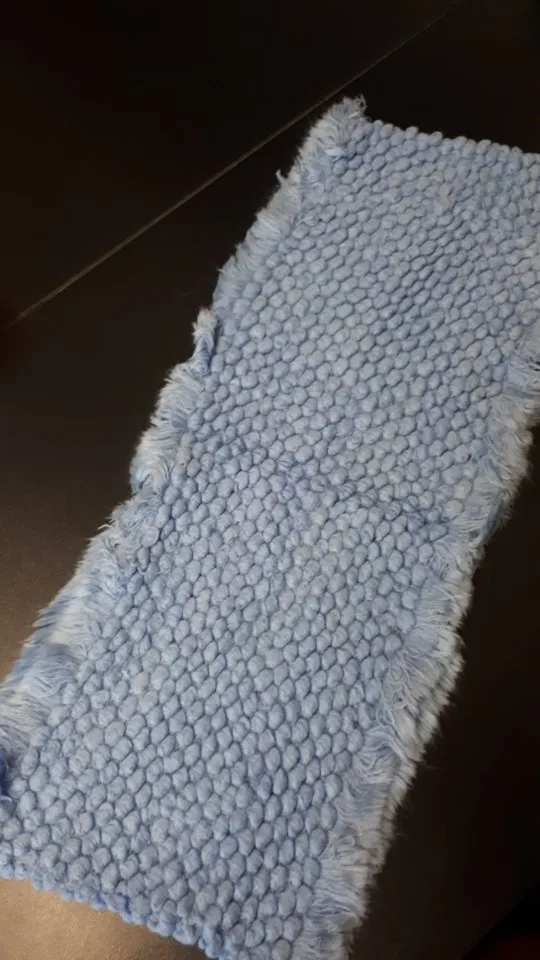 Ressemble à la photo . Cependant ce n’est pas un « tapis » ou couverture. C’est relié un peut comme un snood mais en plus grand . Dommage . Mais aussi non c’est top .