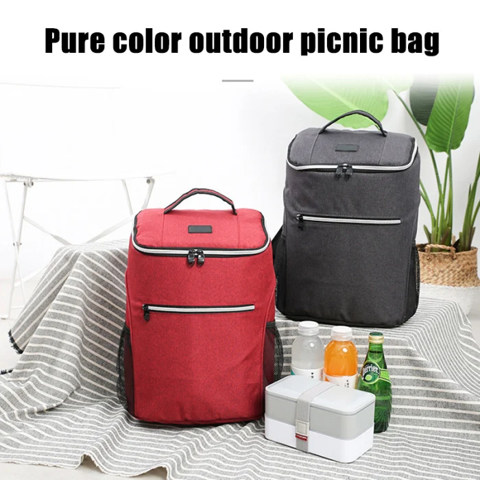 Вместительная унисекс сумка для обеда, одноцветная Водонепроницаемая сераякрасная сумка для пикника для занятий спортом на открытом воздухе