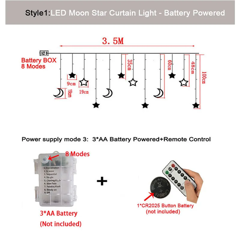 Сказать, что я в восторге, это ничего не сказать, дома с такой гирляндой теперь очень уютно, несколько режимов свечения. Луна и звезды очень большие и сделаны хорошо, в конце гирлянды можно прикрепить ещё одну.