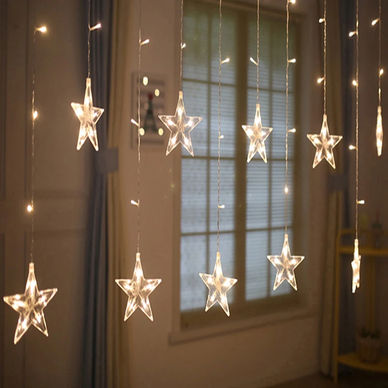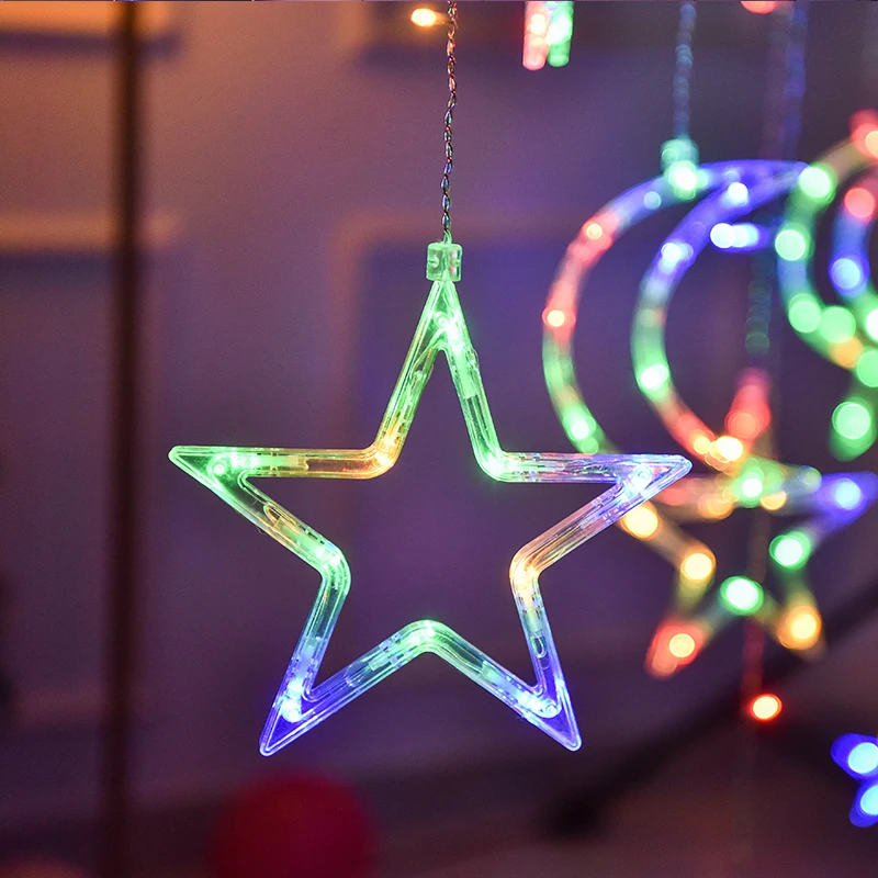 СВЕТОДИОДНАЯ Гирлянда-занавес в виде сосулек, звезд, Луны, Рождественская гирлянда для улицы, бара, дома, свадьбы, вечеринки, сада, украшения для окон