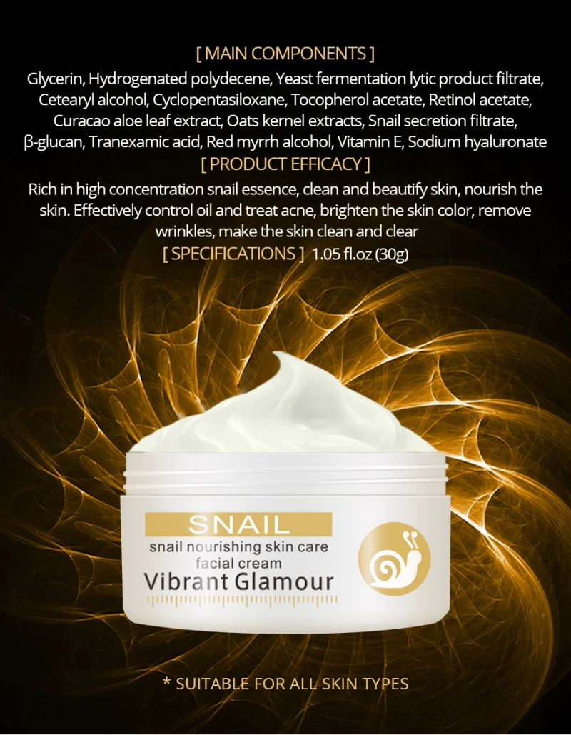Product NameSnail face cream ,Whitening,Wrinkle resisting Fading spots,
