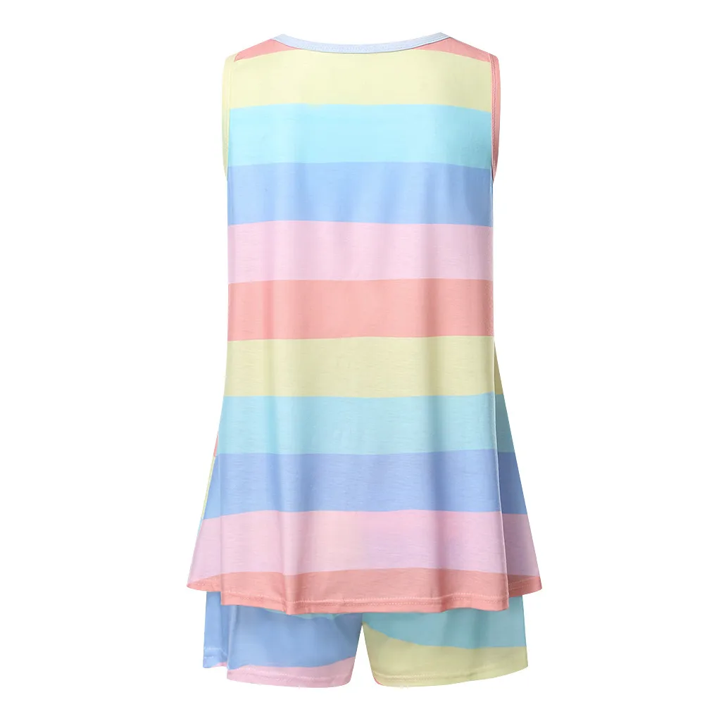 Женский пижамный комплект с коротким рукавом, с радужными полосками, топ для ночного отдыха, короткая одежда для сна, женская пижама большого размера для девочек, домашняя одежда S-5XL