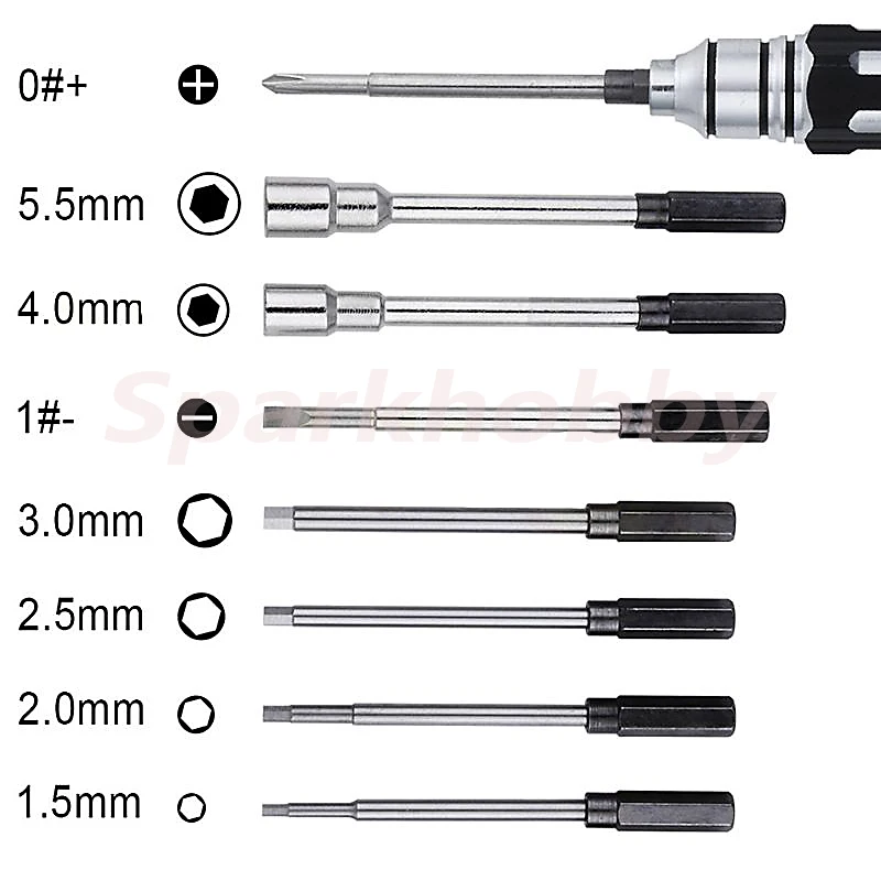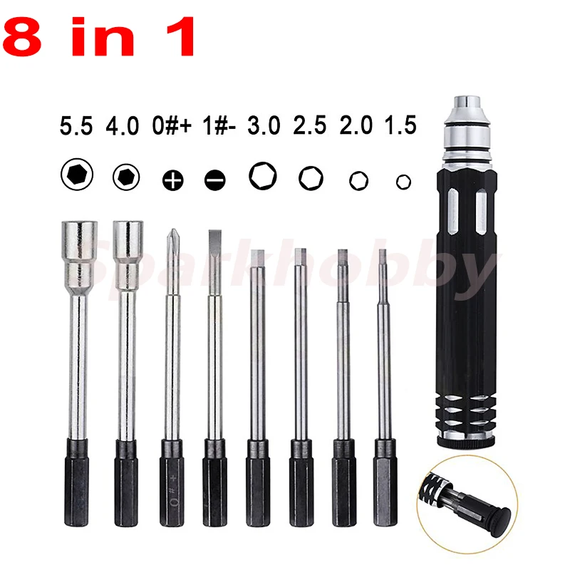 Набор отверток 8 в 1 из нержавеющей стали Sparkhobby с шестигранной головкой, многофункциональный ремонтный набор инструментов для радиоуправляемых моделей автомобилей и дронов, аксессуары и запчасти, 1 комплект