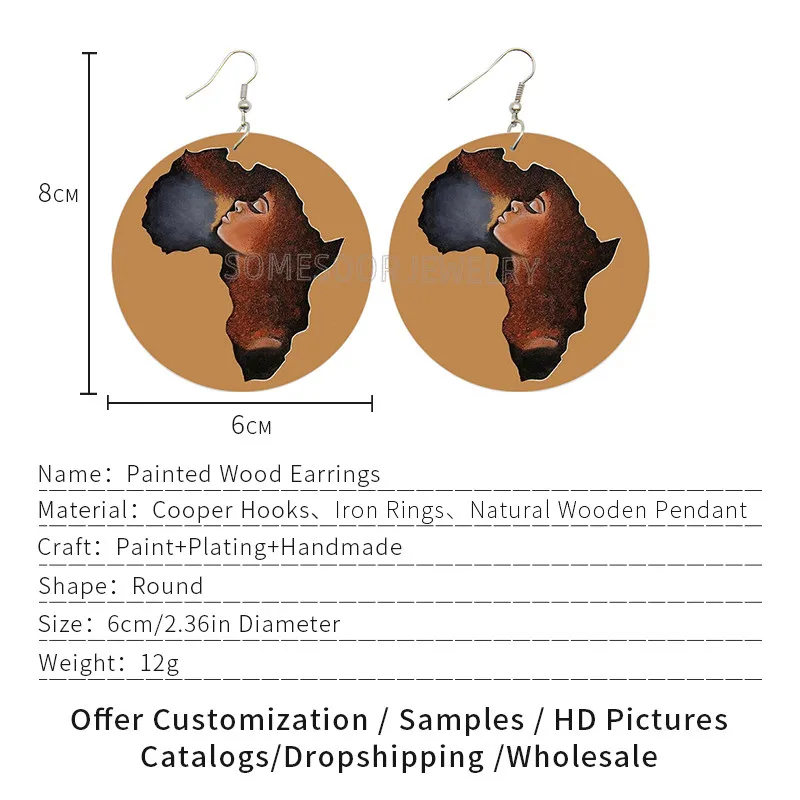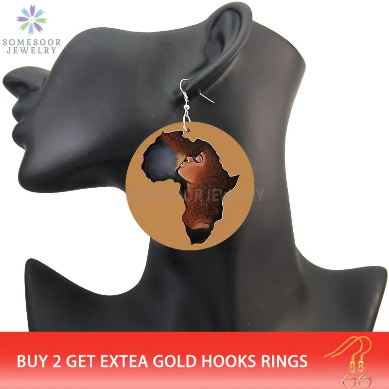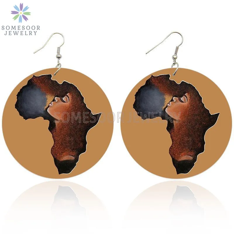 SOMESOOR Африканская Карта этнические деревянные серьги-подвески афро натуральные волосы черные локоны девушка окрашенная деревянная подвеска ювелирные изделия для женщин Подарки