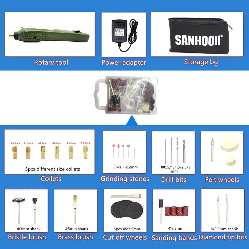 SANHOOII 16000 об/мин роторный электроинструмент Мини электрическая дрель буровые аксессуары для шлифовки Резьба Скульптура Гравировка Ремесло