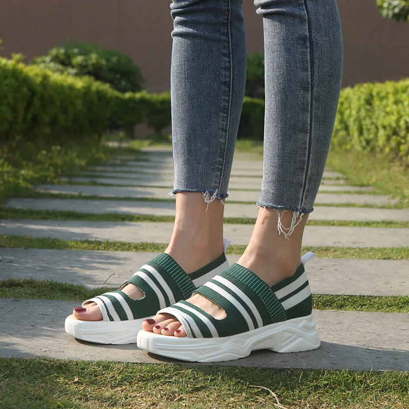 Женские босоножки на платформе; Модель 2020 года; Слипоны на плоской подошве; Женские кроссовки на плоской подошве; Прогулочные женские сандалии на танкетке; Вязаные носки; Кроссовки