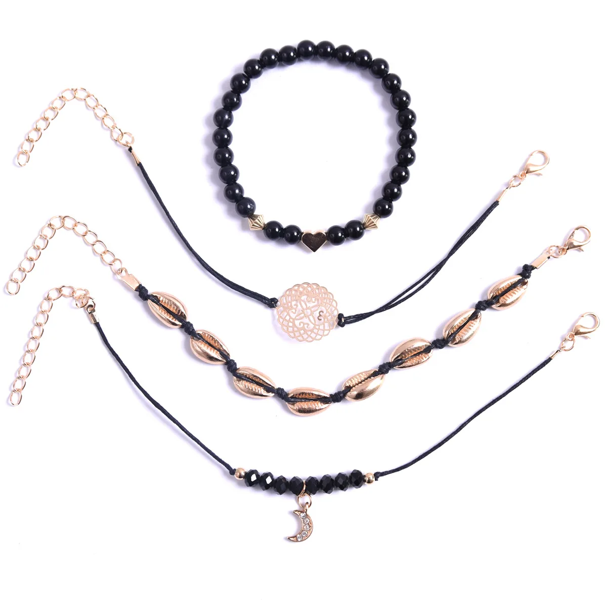 Веревка с бусинами, украшенная кристаллами, в стиле бохо, браслет с Луной, браслет с цепью