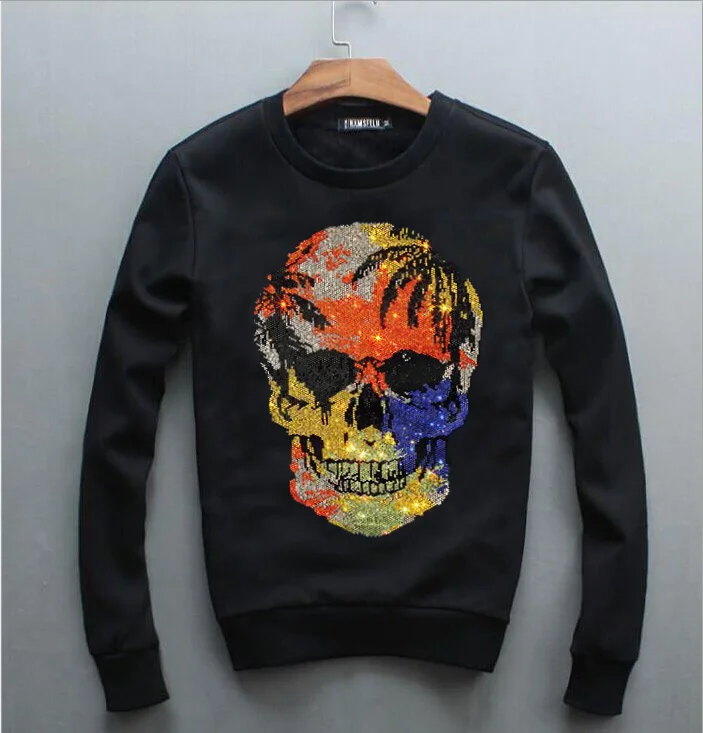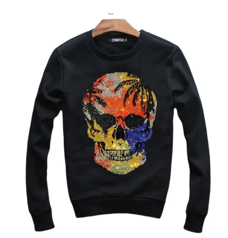 Зимняя Толстовка Стразы с черепом, Мужская Уличная одежда с бриллиантами и камнями, худи с рисунком аниме, пуловер для мальчиков, модные топы