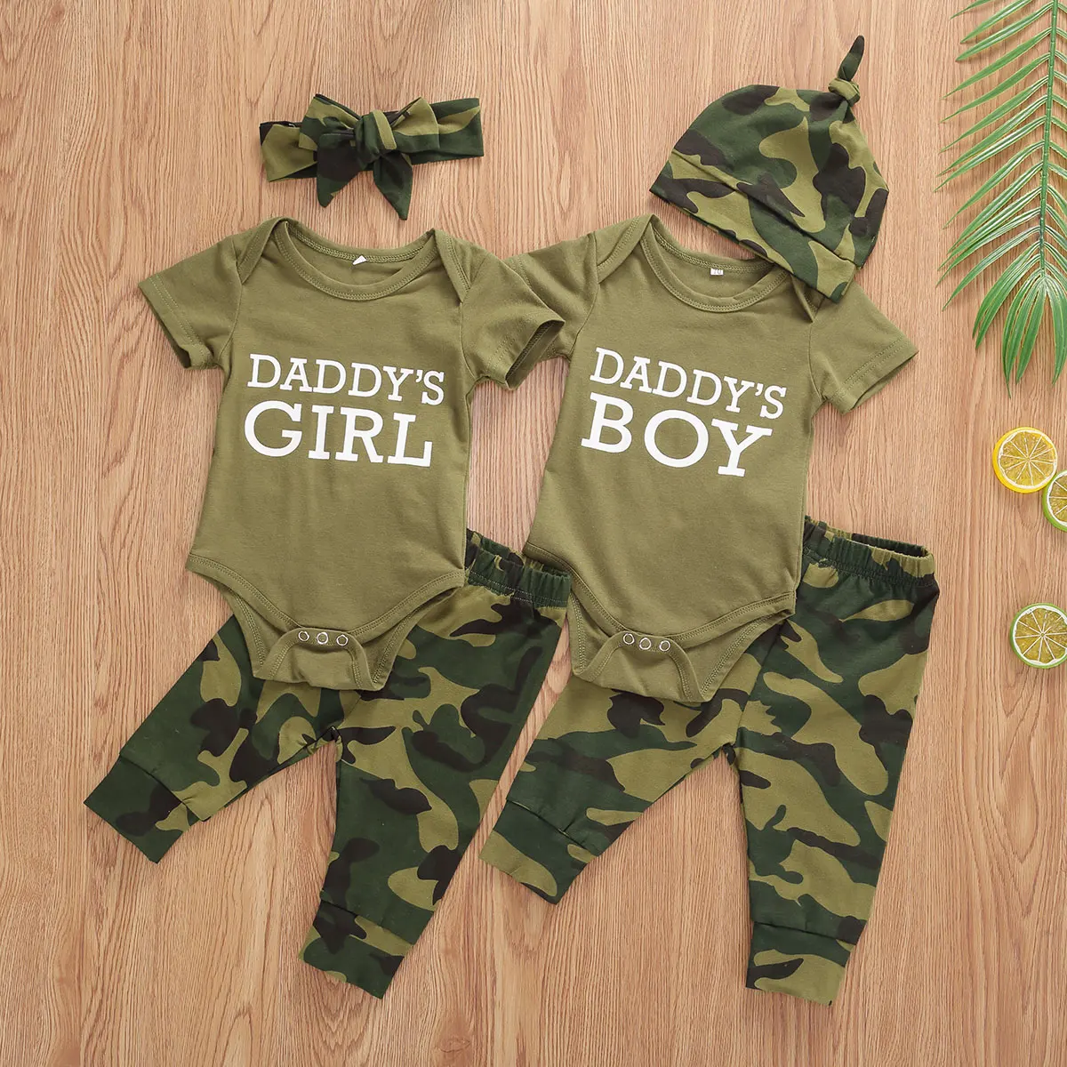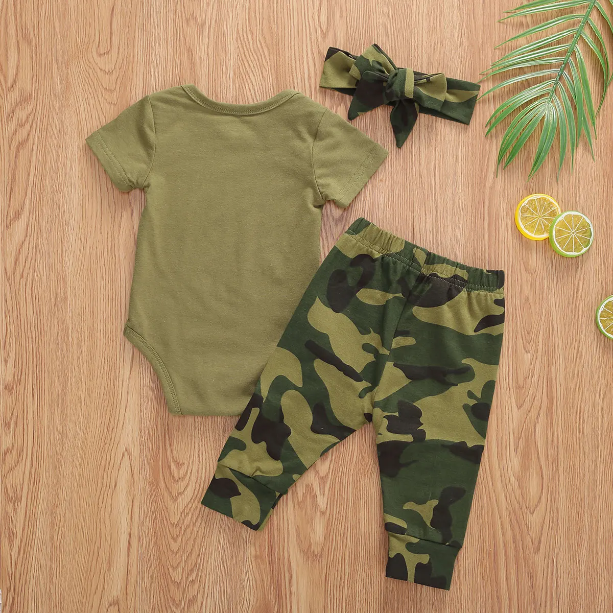 Комплекты одежды для маленьких мальчиков и девочек 0-12 месяцев, комбинезон с коротким рукавом и буквенным камуфляжным принтом, топ + штаны, повязка на головушапки, 2020