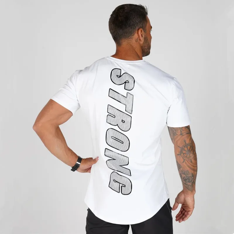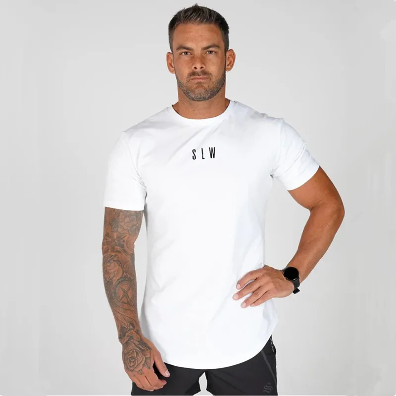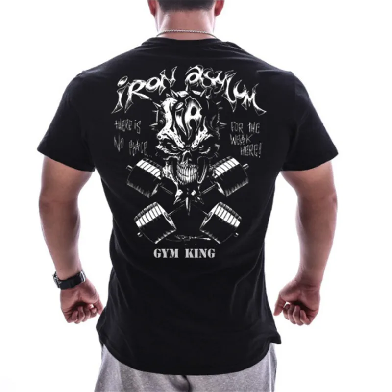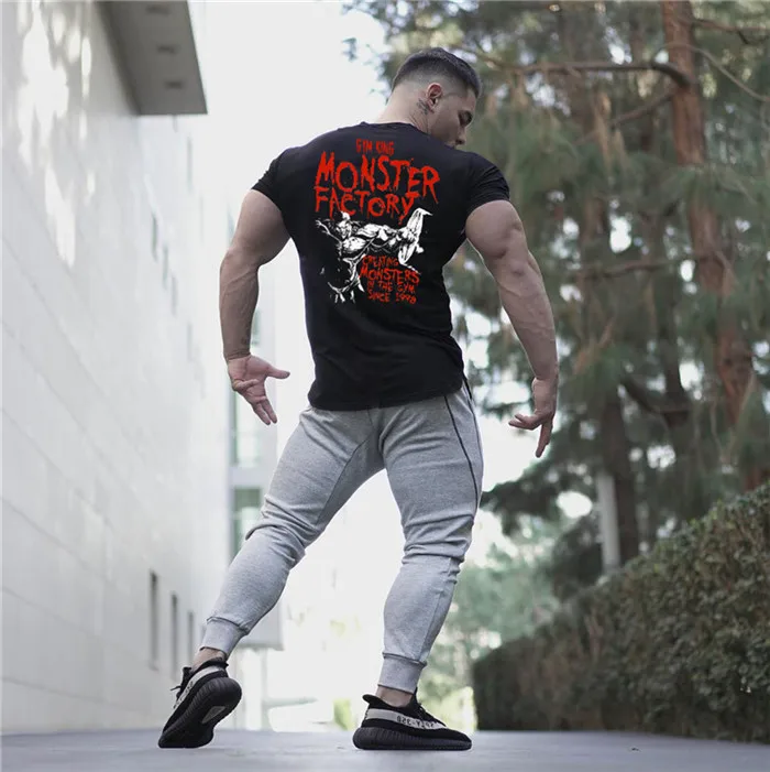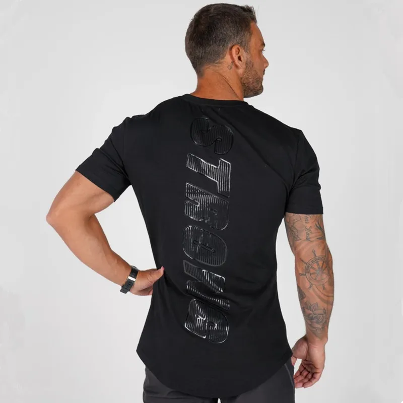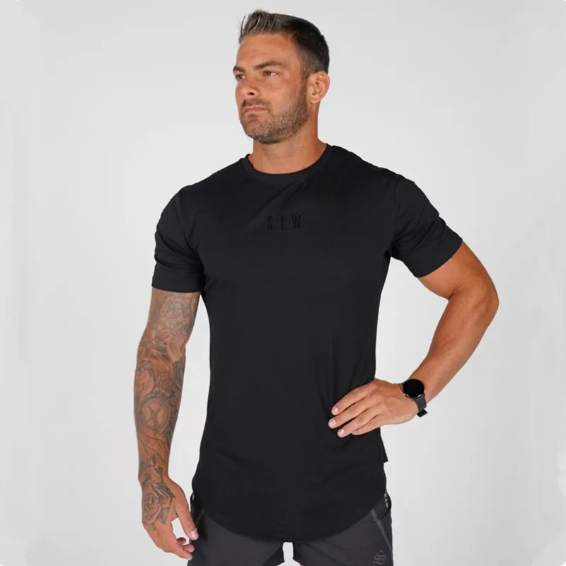 Новинка 2019, Мужская хлопковая футболка, джоггеры, Спортивная облегающая футболка, мужские тренировочные костюмы для фитнеса, бодибилдинга, тренировок, черные топы, спортивная одежда