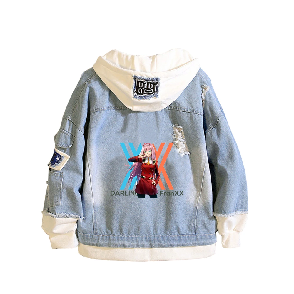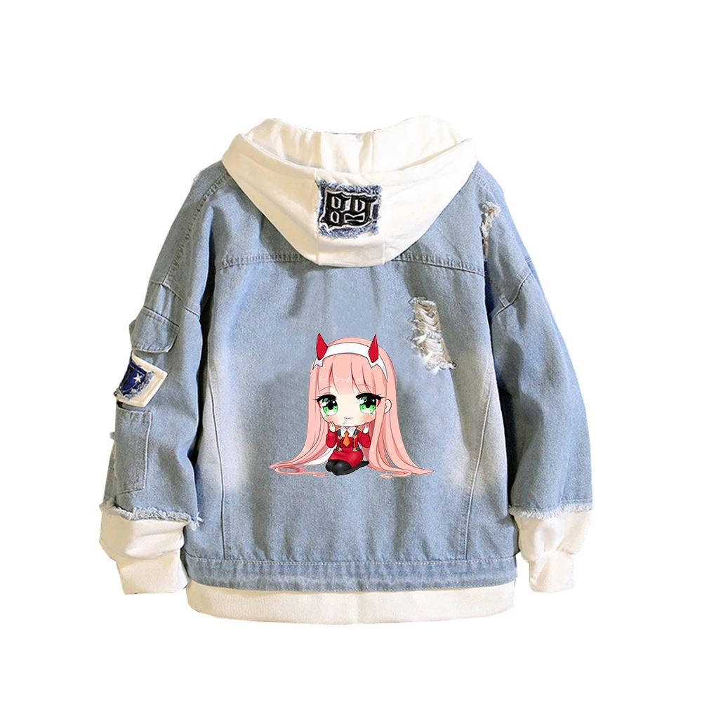 Джинсовая куртка DARLING in the FRANXX в стиле аниме Harajuku, уличная мода для мальчиков, ветровка, женские толстовки с героями мультфильмов, Толстовка для пары