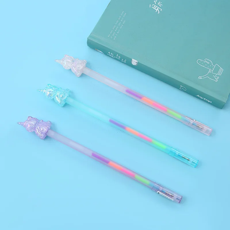 1 шт., Корейский хрустальный кавайный гелевая ручка с единорогом, ослепительный лазер, канцелярские принадлежности, цветные стержни для письма, 0,5 мм, новинка, милая