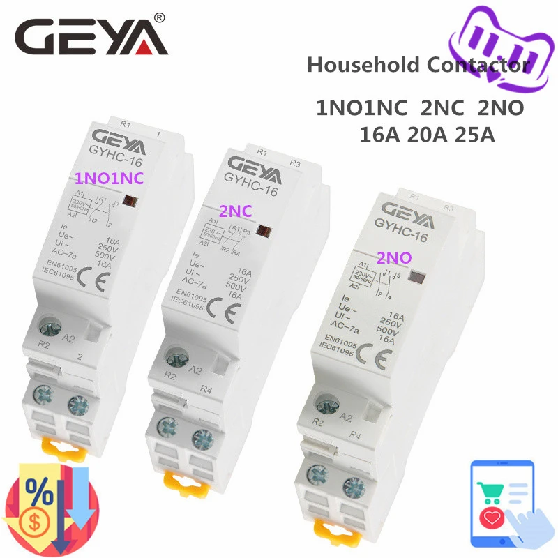 Бытовой модульный контактор GEYA Din-рейки, 2P 16A 20A 25A 2NC 2NO 1NO1NC 5060 Гц, автоматический контактор переменного тока