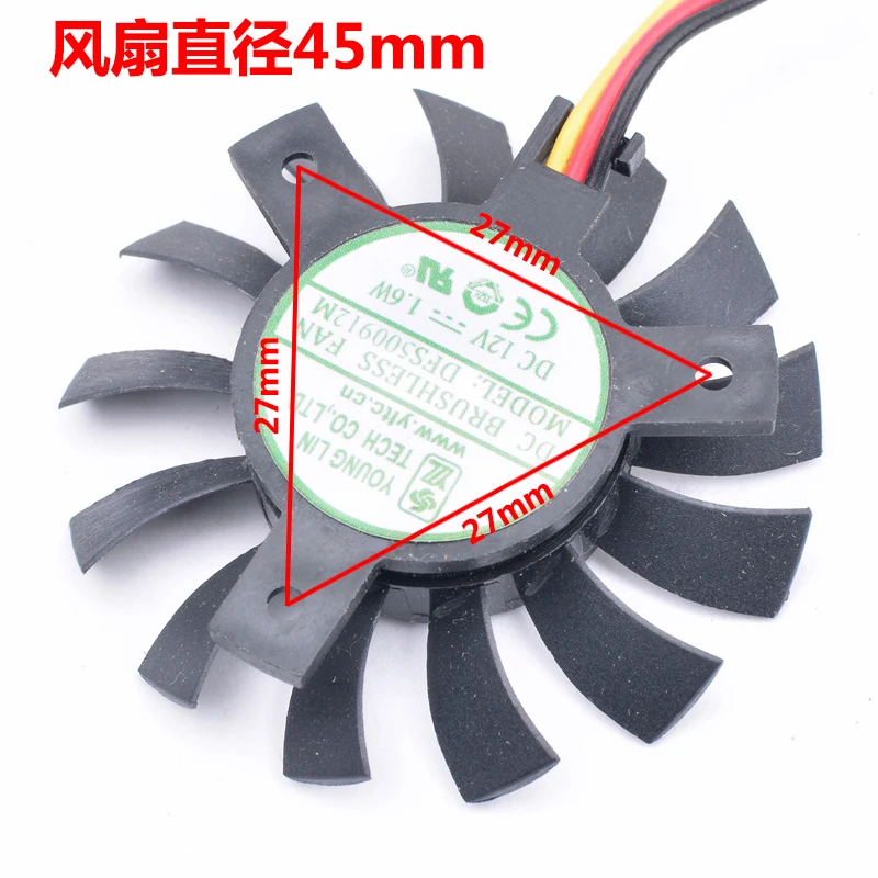 Вентилятор Охлаждения видеокарты DFS500912M, 12 В, 1,6 Вт, диаметр 45 мм, расстояние между отверстиями 27 мм