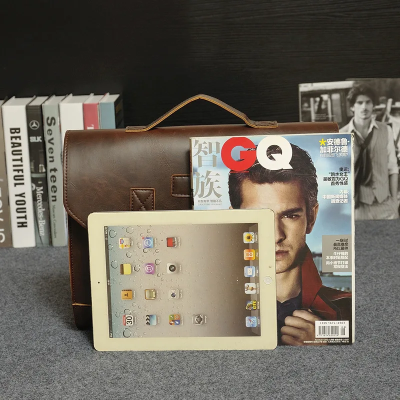 Мужской деловой портфель в стиле ретро, сумка-мессенджер из искусст...