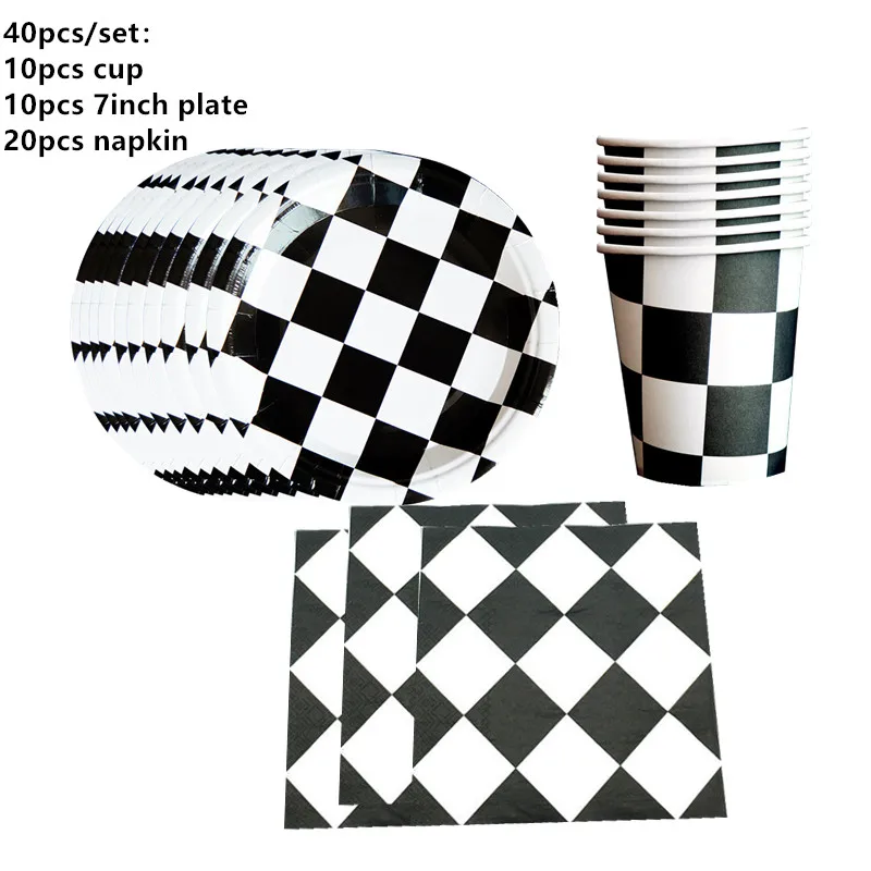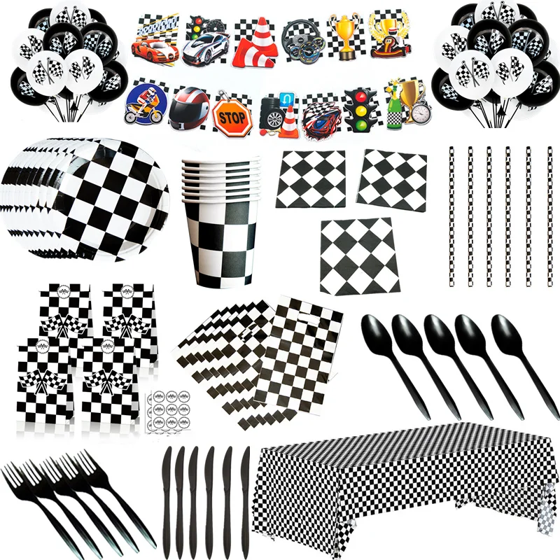 Тема гоночного автомобиля одноразовая посуда черный белый клетчатый...