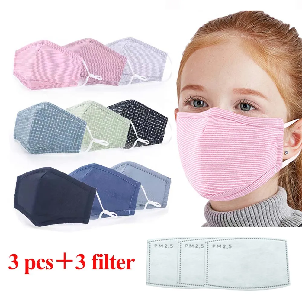 3 шт., детская маска для лица, многоразовая, против загрязнения, PM2.5, хлопковая Милая маска для рта, детская маска для мальчиков и девочек с фильтром из активированного угля
