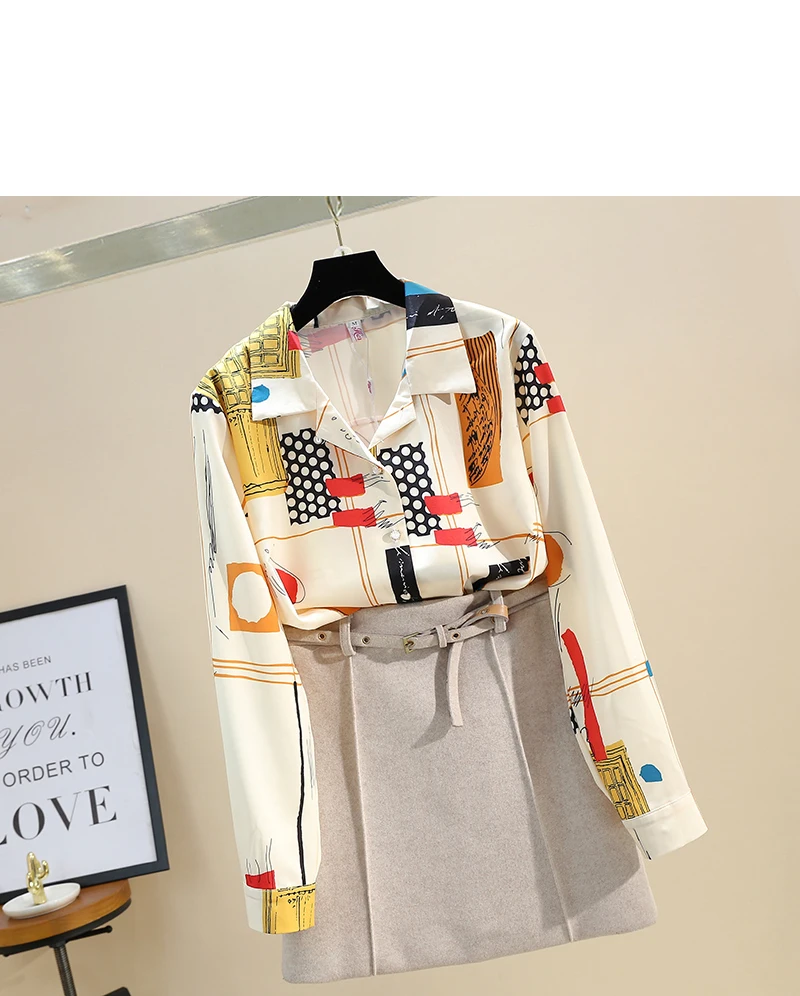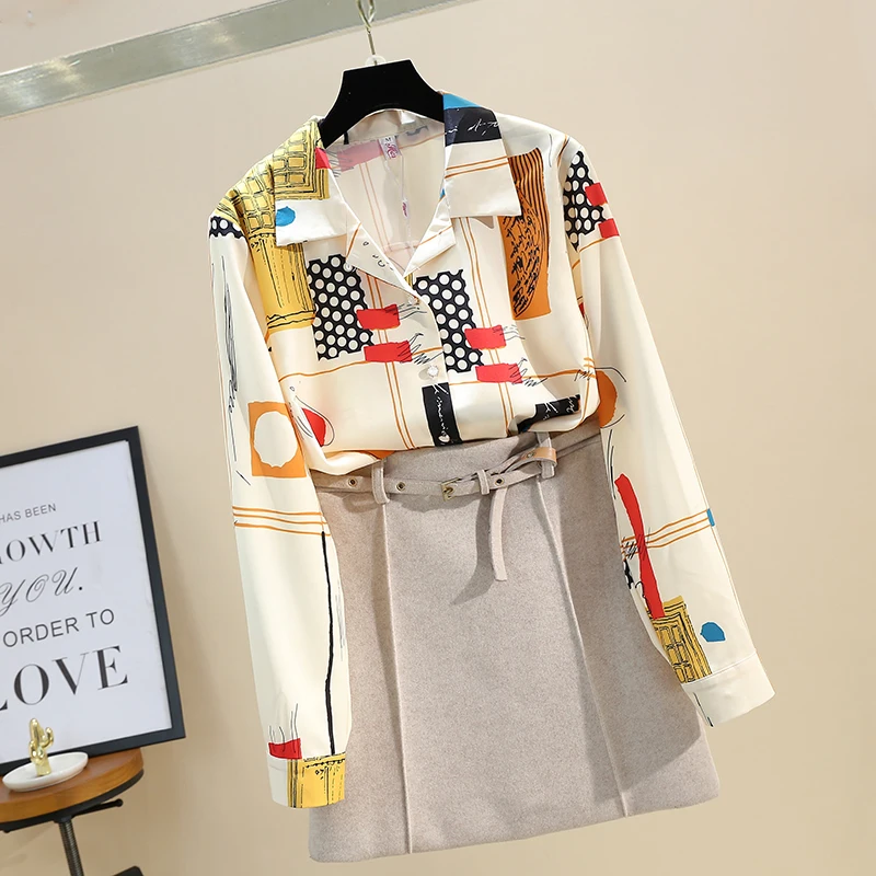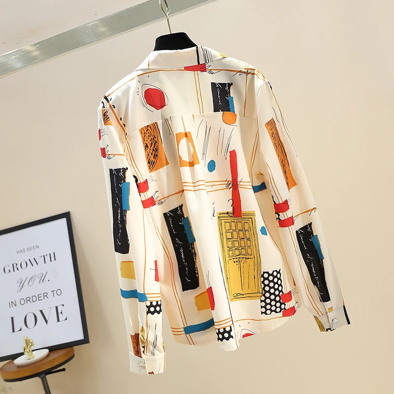 Блузка женская тонкая шифоновая с отложным воротником и длинным рукавом