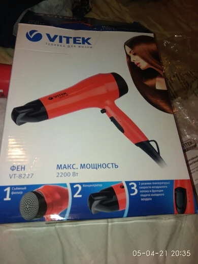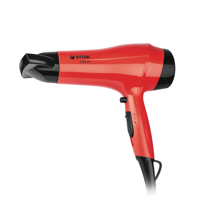 Фен VITEK VT-8227 отличает привлекательный ярко-красный корпус, а также мощность 2000 Вт и встроенная защита от перегрева.