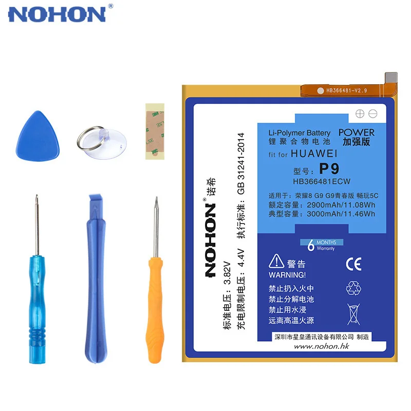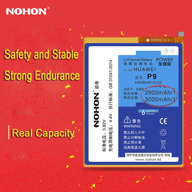 Оригинальный NOHON HB366481ECW для Huawei Ascend P9 P 9 Lite G9 Honor 8 5C 3000mAh Мобильный телефон батарея Высокое качество Бесплатные инструменты в наличии номер отслеживания