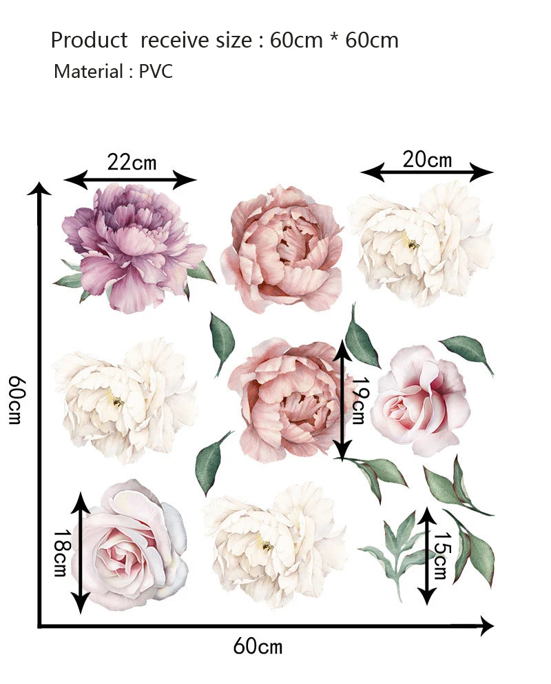 Красивая самоклеящаяся наклейка с цветами пиона, ПВХ, ТВ-фон, муурн...