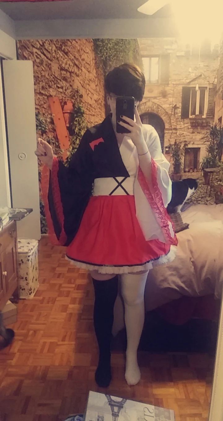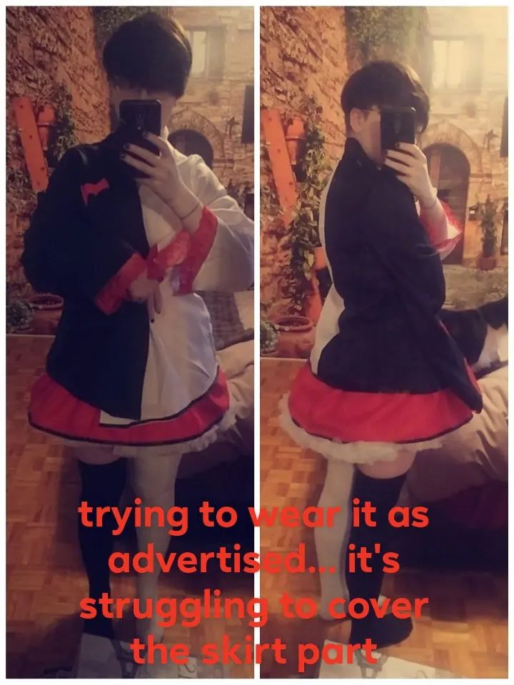 (Обратите внимание, что на фотографиях я ношу свои носки и нижнюю юбку) С чего начать... На всех частях костюма есть свободные ботфорты. Носки в лучшем случае длиной по щиколотку и непригодны для носки, потому что у них нет пяточной части, и только в конце носки. Черный ремень должен закрываться липучкой, но оба ремня с одной и той же стороны, и он слишком мал, чтобы соответствовать моей талии в любом случае. Obi не может быть правильно завязан на спине, потому что он слишком короткий, но, по крайней мере, эта часть спасательная. Я получил средний размер, потому что это мой обычный размер, и он почти не подходит мне, это отстой, потому что он не сказал, что нужен размер больше. Материал также очень тонкий и дешевый, и, учитывая, что этот заказ был почти 40 CAD, включая доставку, я действительно чувствую, что потратил свои деньги. Я ставлю эти 2 звезды только потому, что они все еще выглядят довольно хорошо, и я все еще буду носить их для своего монокумы. Но я чувствую разочарование и ожидала намного лучшего.