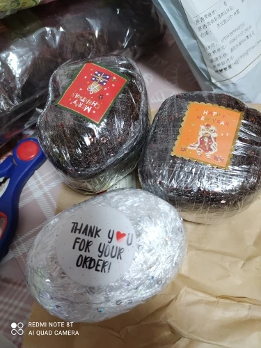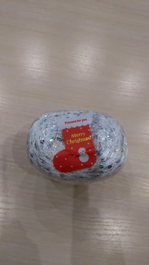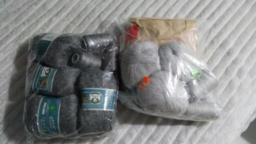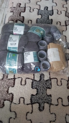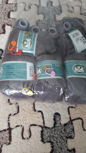 Заказ пришёл в срок за три недели. Всё хорошо упаковано, с новогодней символикой. Думала, что нитка будет тоньше, брала в подмотал к мохеру. Все мотки по 100 гр. В общем осталась довольна.