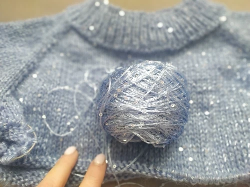 я даже не знаю, что сказать... сама нитка приятная. вискоза. но эти пайетки... это полный пипец. из белого пластика. не ровные. жесткие. связала образец, смешав с норкой, и поняла, что они все портят. ещё и колятся.