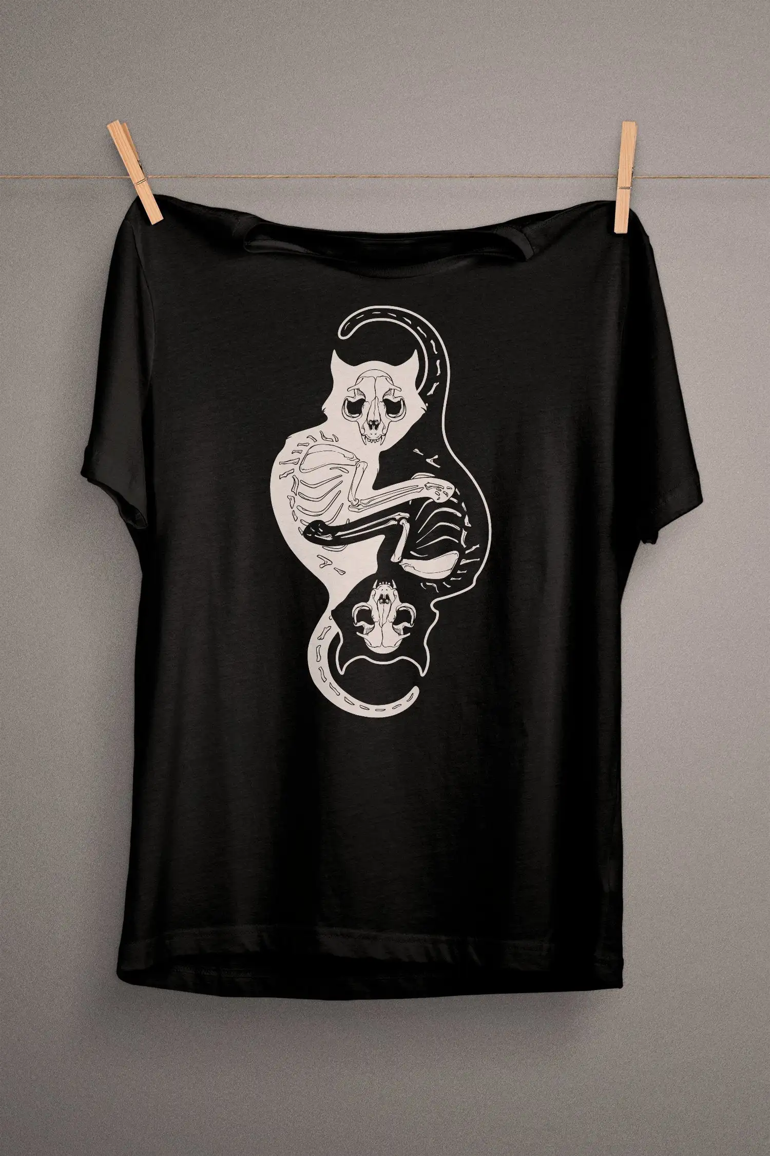 Футболка унисекс, из 100% хлопка, с изображением трех котов и костей, в готическом стиле, с черепом, повседневная, модная, в стиле гранж, футболка tumblr