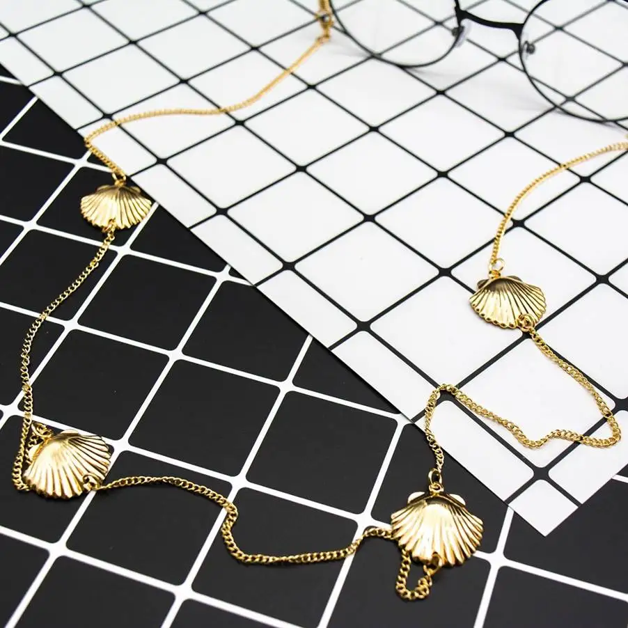 Шнурок для очков с золотыми ракушками и жемчужинами, шнурок-держатель для очков, цепочка для солнцезащитных очков, аксессуары для очки с кристаллами