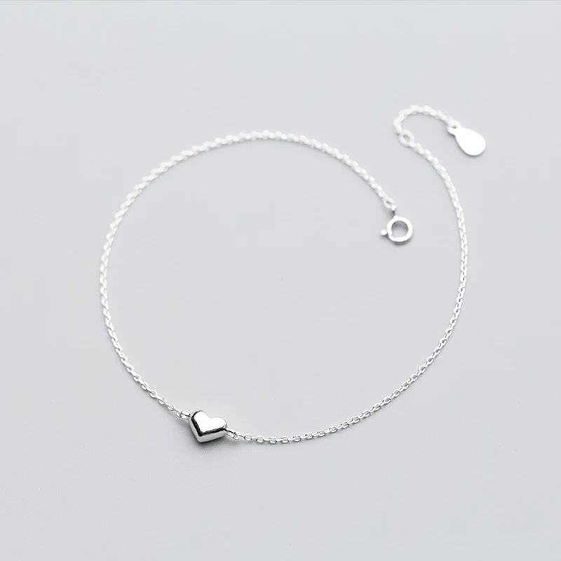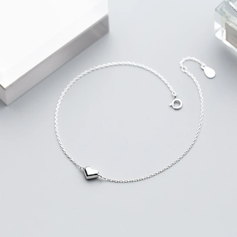 Браслет на лодыжку женский из серебра 925 пробы с сердцем