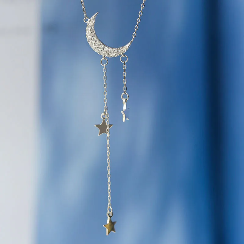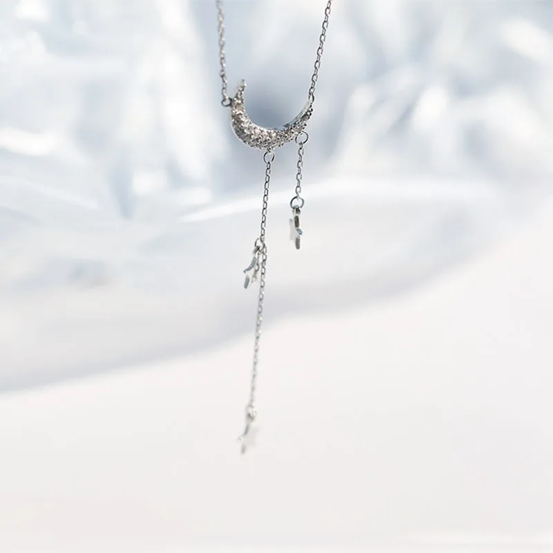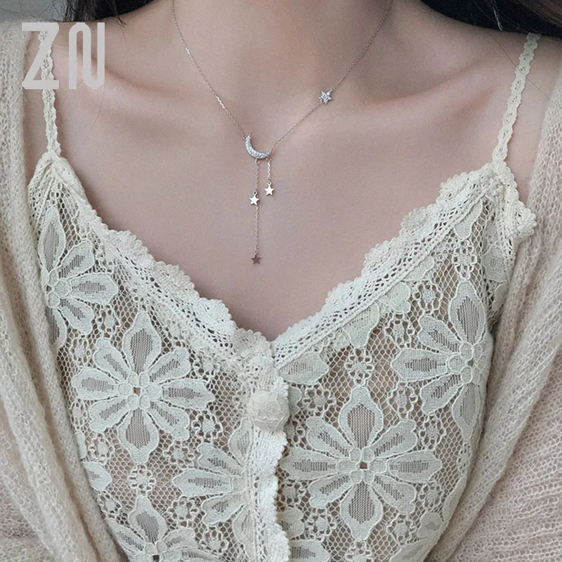 Трансформаторного двигателя Mn-ZN 2021 Милая 925 стерлингового серебра с изображением луны и звезд, с кисточками, ожерелья для женщин колье ожерелье Свадебные украшения ожерелье