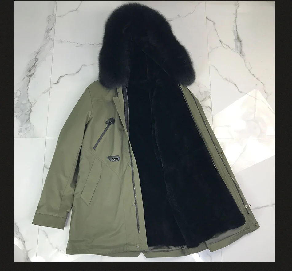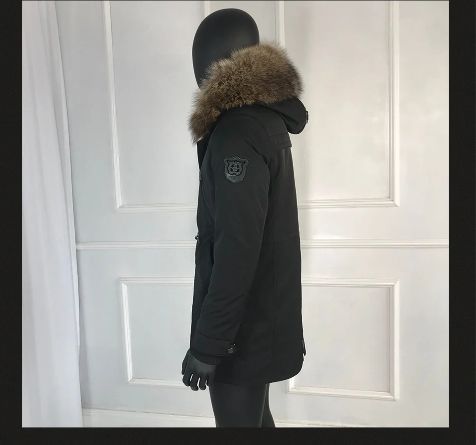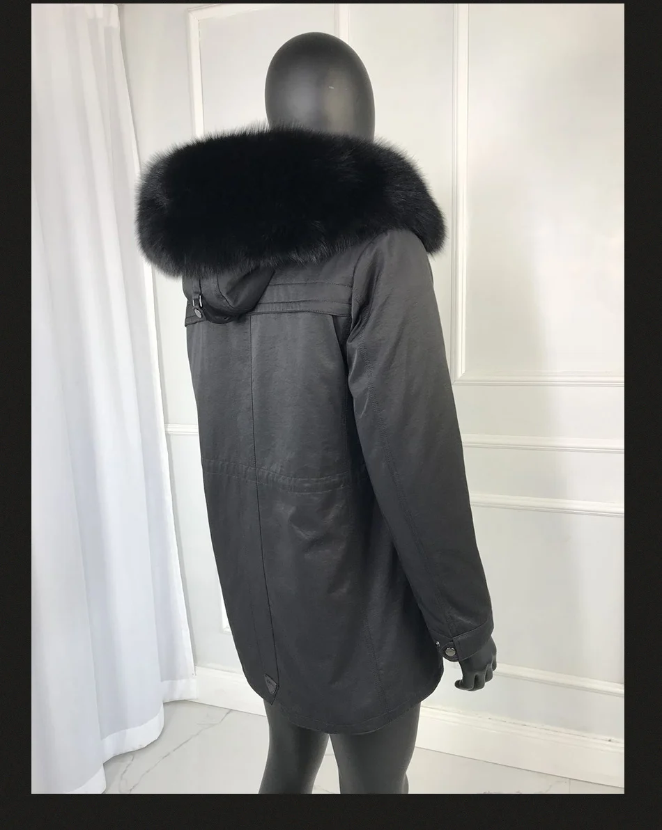 Парка мужская зимняя с капюшоном, с подкладкой из натурального Лисьего меха