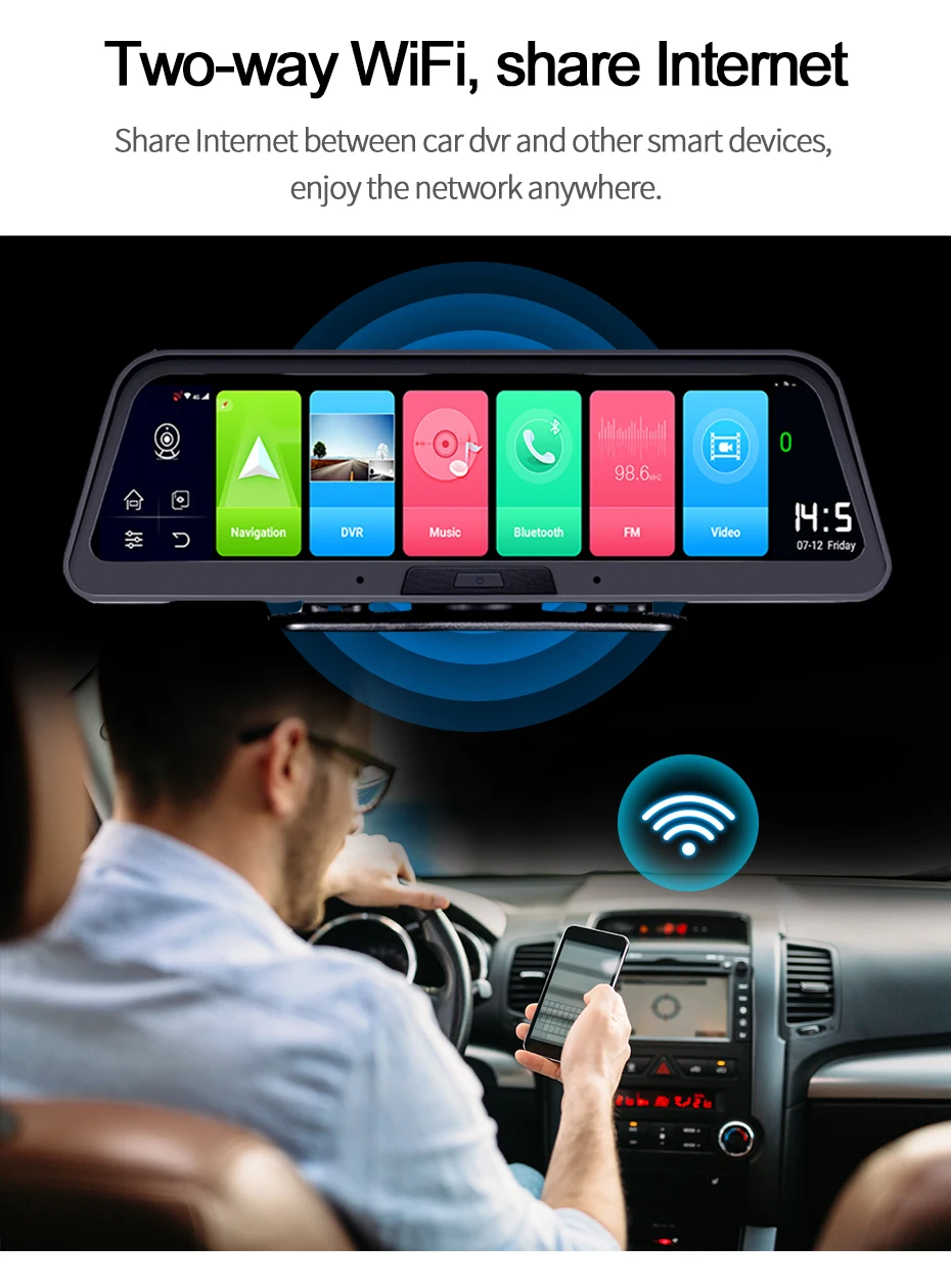 Встроенный Wi-Fi позволяет оставаться на связи на ходу и быстро просматривать веб-сайты. GPS карта, фильмы, музыка и приложения могут быть предварительно загружены, когда доступен бесплатный WiFi.Не только Автомобильный видеорегистратор подключается к Wi-Fi, но и может быть точкой Wi-Fi для вашего другого устройства, когда Автомобильный видеорегистратор поставляется с интернетом на 2G/3G/4G sim-карты.