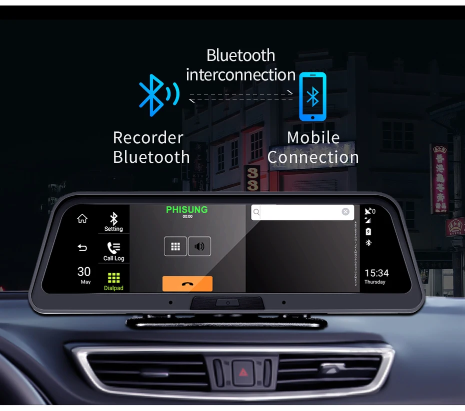 Он встроен в модуль bluetooth, После сопряжения bluetooth с мобильный телефон, он может поддерживать телефонный звонок на автомобильном зеркале dvr, или передавать музыкальные песни на Автомобильный видеорегистратор с мобильного телефона.