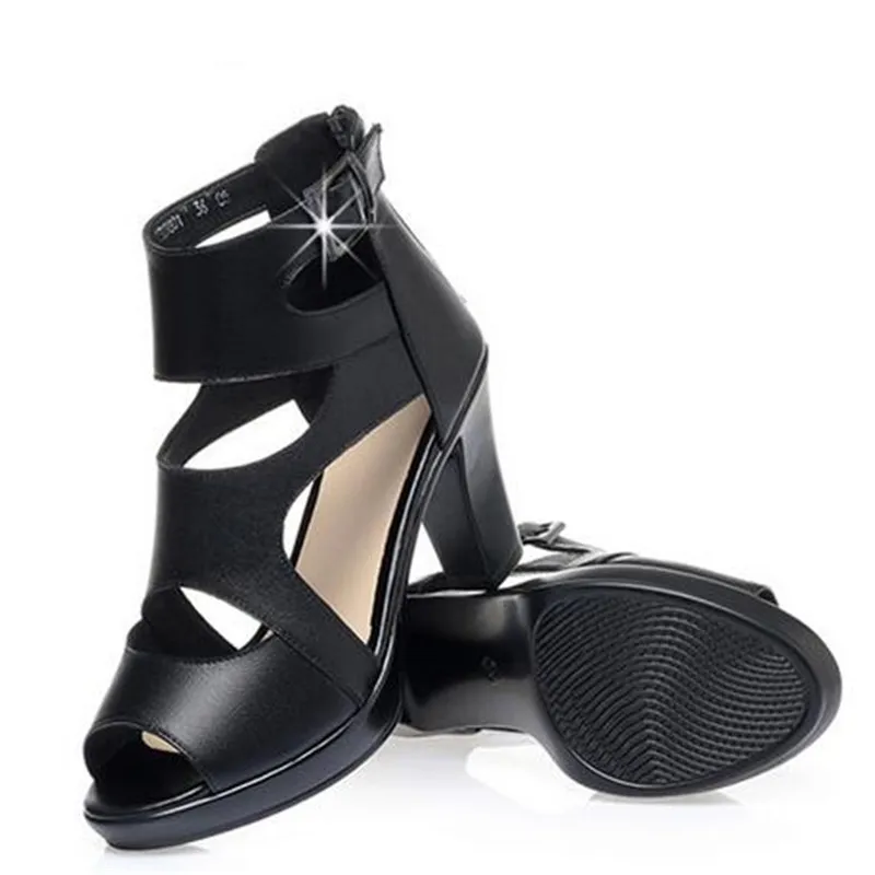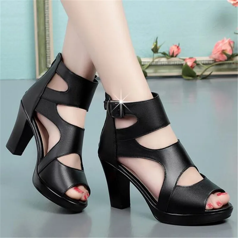 Женские босоножки из натуральной кожи, на высоком каблуке
