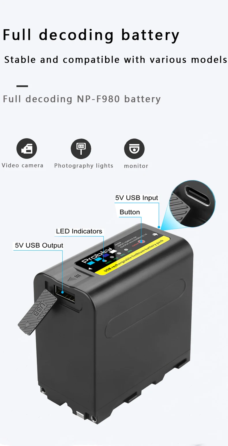 Аккумулятор 5 в USB на выходе, 8800 мА ч, NP-F980, NP NP-F970, F970, F960, со светодиодным индикатором питания для Sony F960, F550, F570, F750, F770, MC1500C