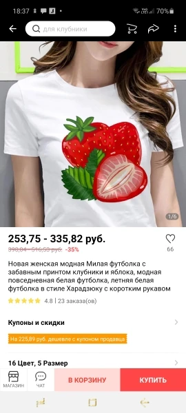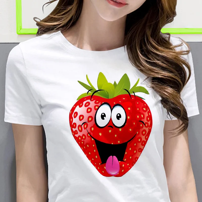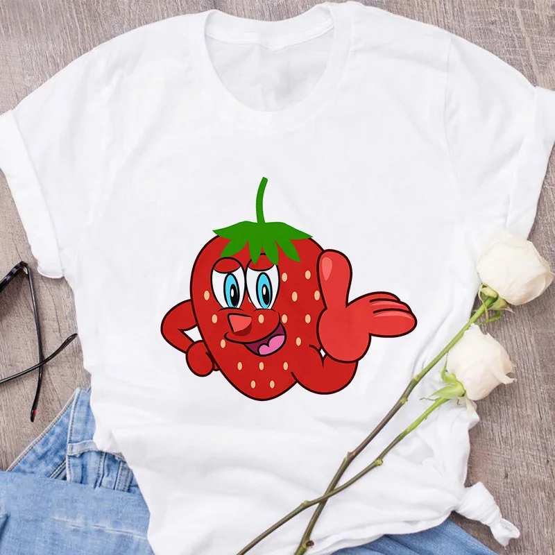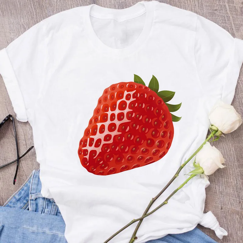 Футболка модная Повседневная белая футболка с принтом клубники Мила...