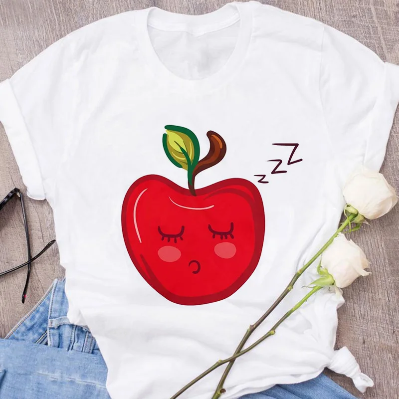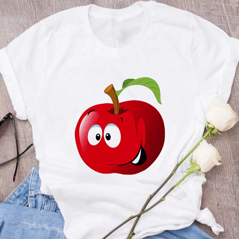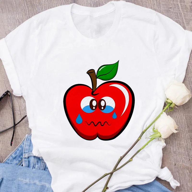 Футболка женская с забавным принтом яблока, милая Модная Повседневн...