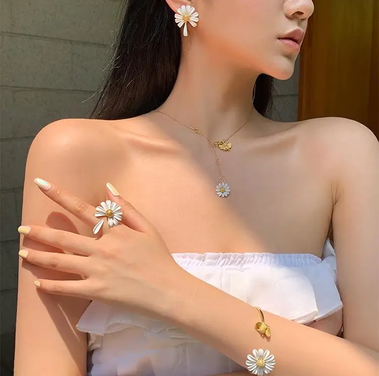 Ожерелье HUANZHI с белой эмалью, винтажное Элегантное ожерелье металлическое Золотое в виде цветка ромашки, подарочное Ювелирное Украшение для женщин, весна 2020