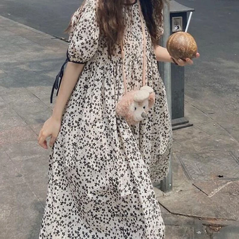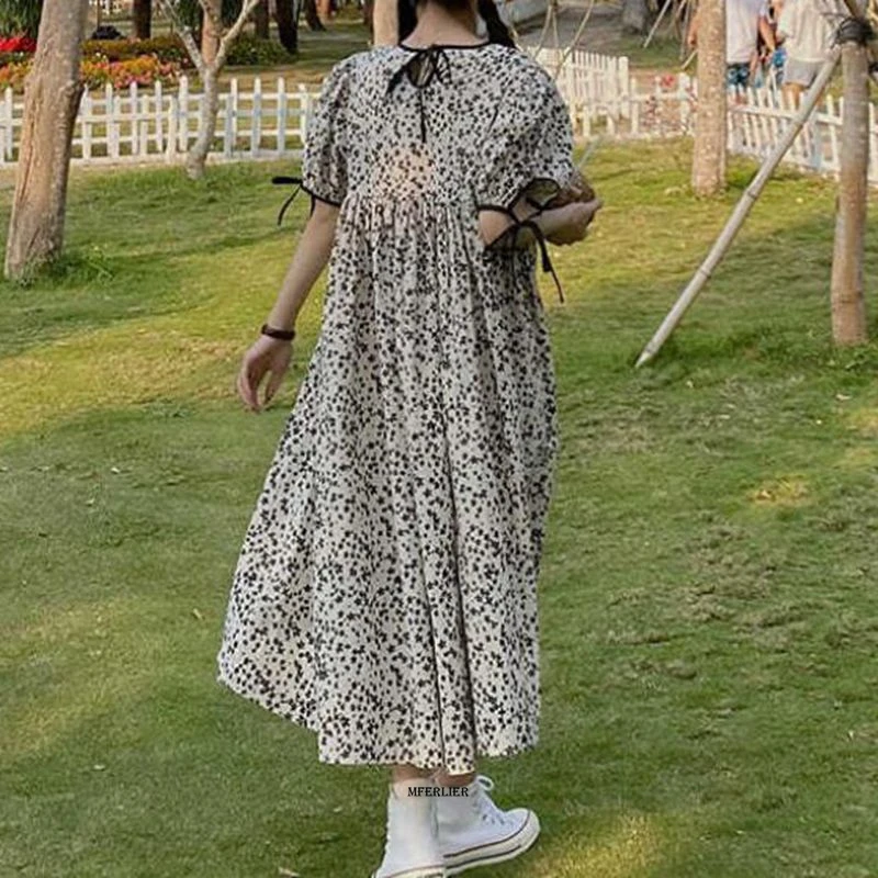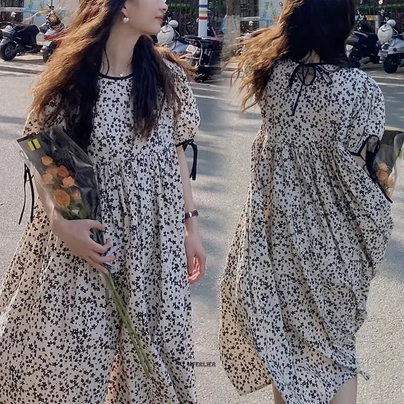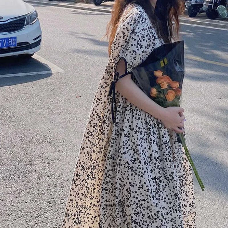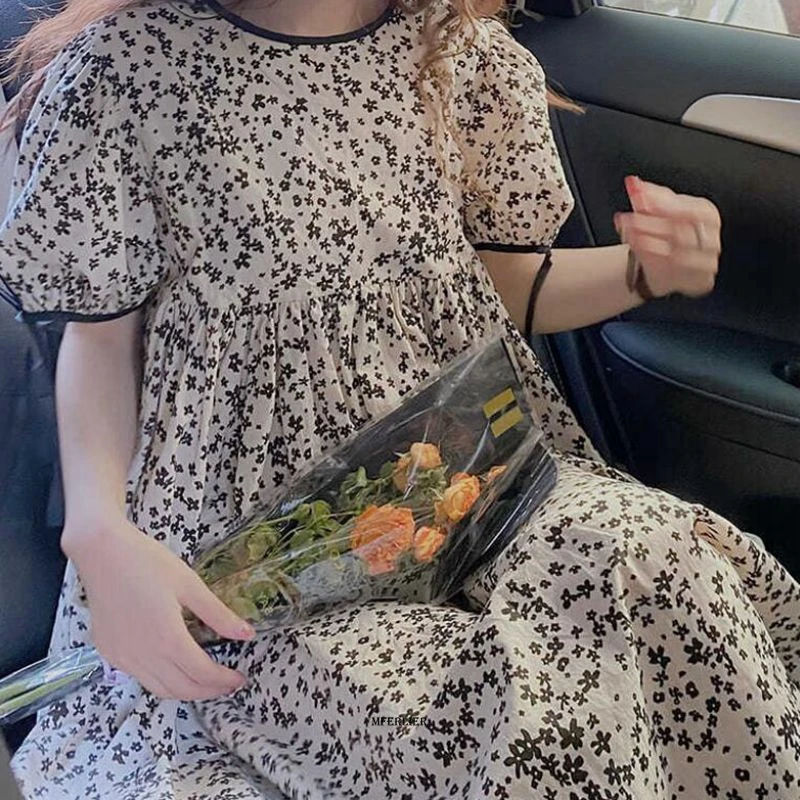 Женское летнее платье с цветочным принтом и коротким рукавом, свободного покроя