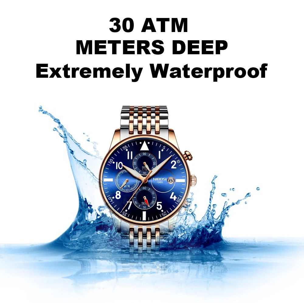 Часы наручные NIBOSI Мужские кварцевые, брендовые Роскошные повседневные водонепроницаемые деловые, в стиле милитари, с циферблатом