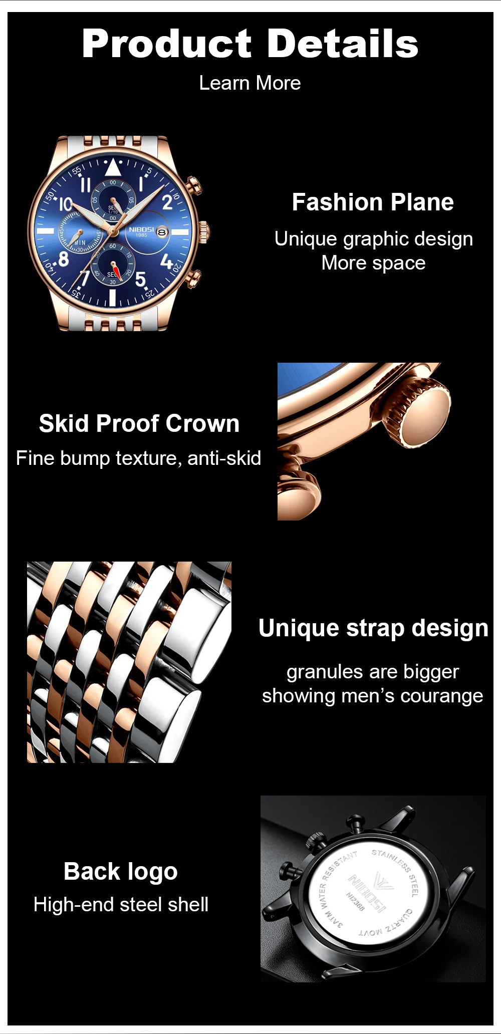Package Including1 x Nibosi Watch 1 x Elegant Box 1x User Manual