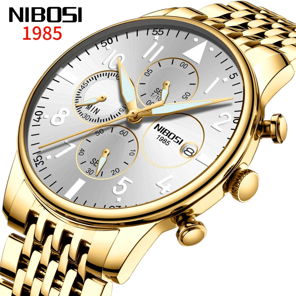 Мужские спортивные часы NIBOSI 2021, роскошные золотистые кварцевые...