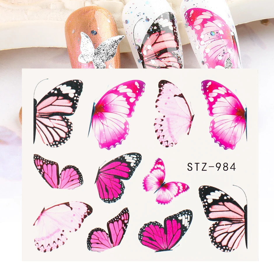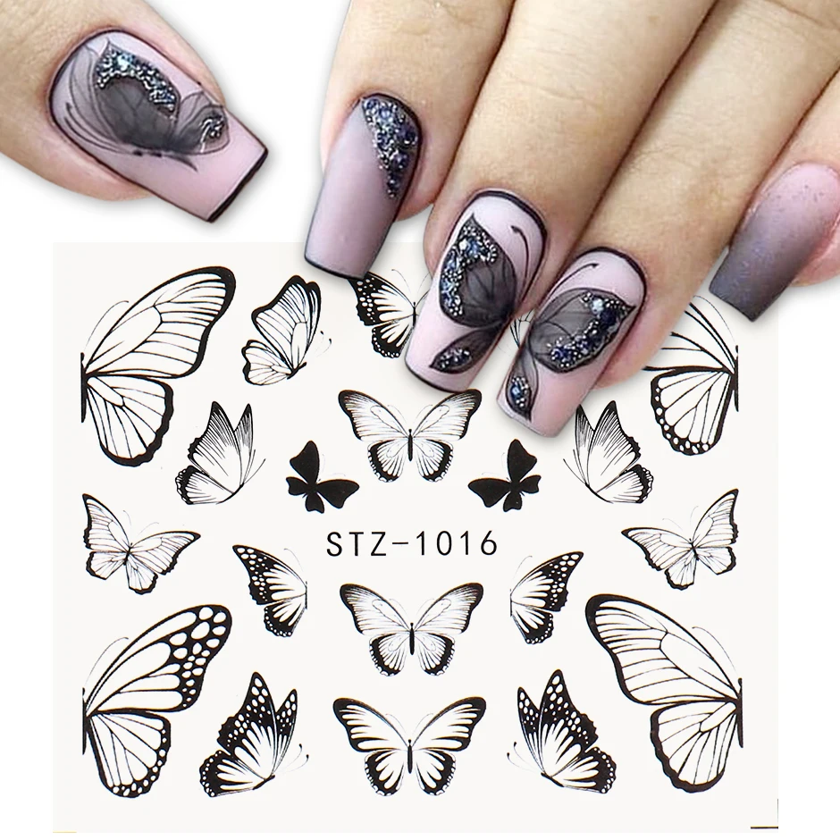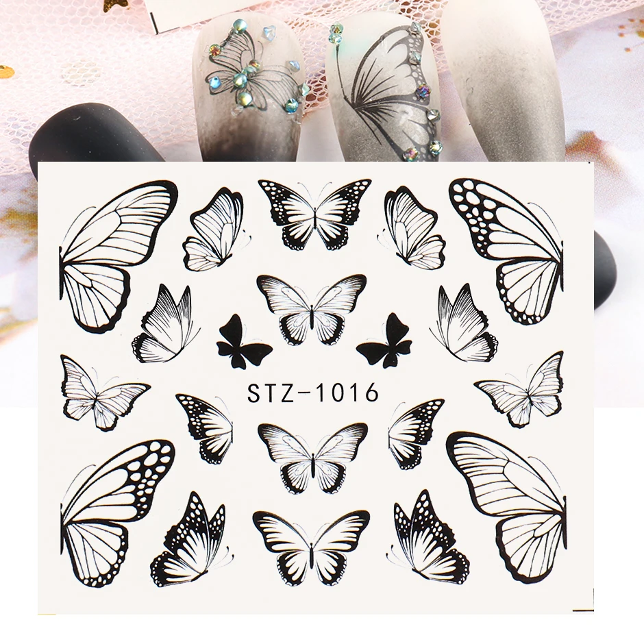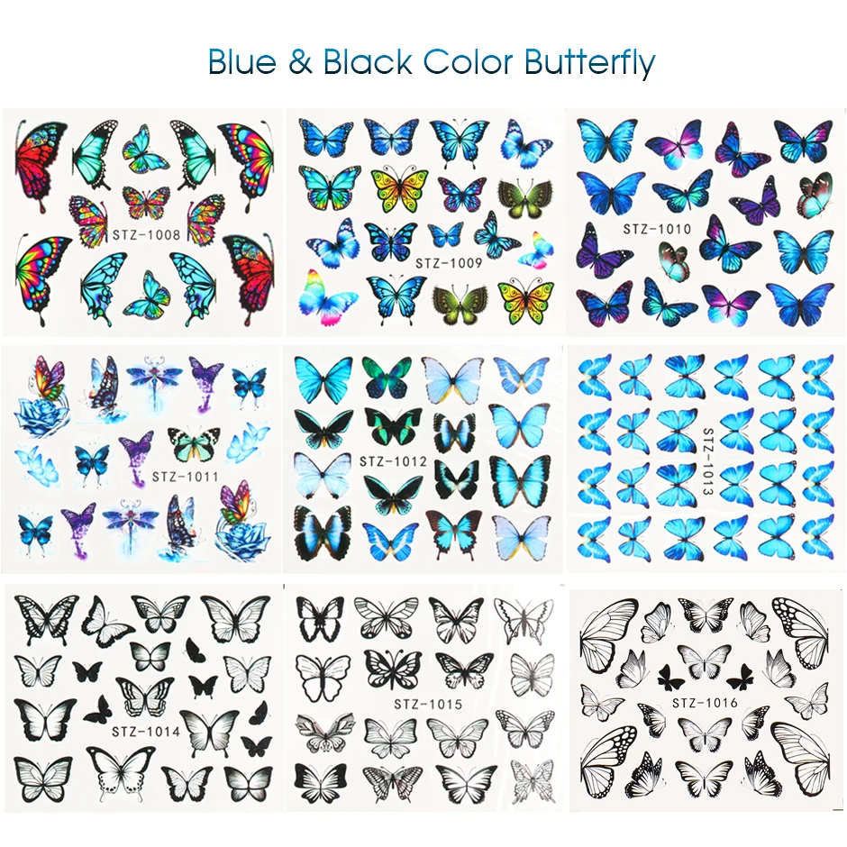 Переводные наклейки для ногтей с изображением черной бабочки, 1 шт., цветные голубые водные тату, для маникюр гвоздь, декоративные слайдеры, CHSTZ982-1017