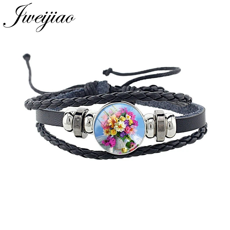 JWEIJIAO красивый красочный цветок искусство браслет с фото искусственная кожа 18 мм стекло кабошон кнопки браслеты модные ювелирные изделия F01