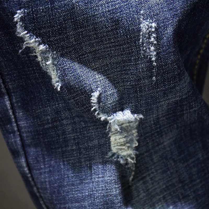 Мужские потертые джинсы с дырками, повседневные хлопковые облегающи...